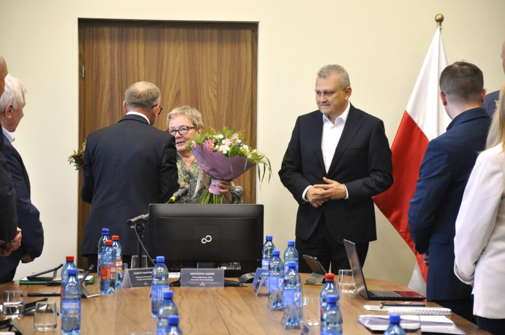 VIII sesję Rady Powiatu Nowosolskiego rozpoczęły śmiech, łzy i kwiaty. Podczas uroczystego pożegnania doceniono wieloletni wkład Osińskiej w rozwój placówki.
