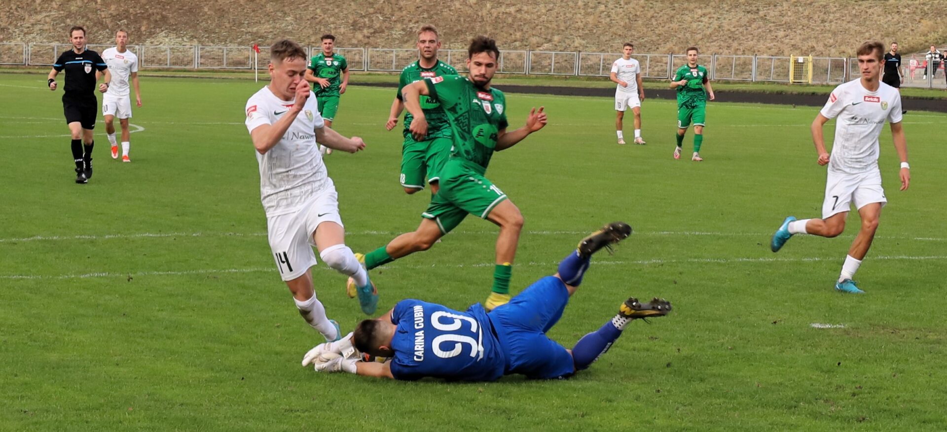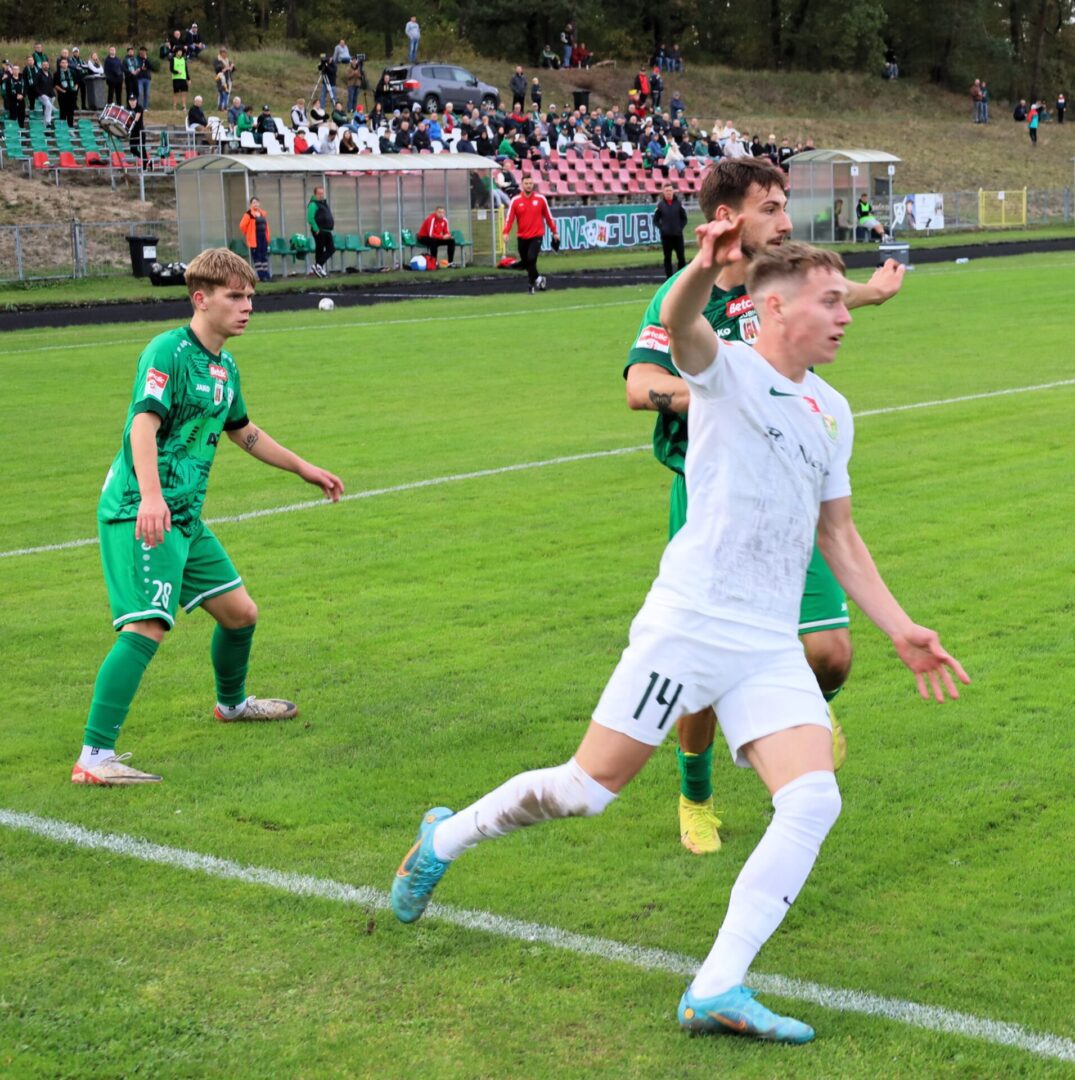Tymczasem Carina Gubin rozegrała dobre spotkanie i postawiła się liderowi. Prowadzenie w konfrontacji ze Śląskiem II Wrocław objęła po dobitce Denisa Matuszewskiego. Rywale wyrównali w 45+1 minucie i była to ich jedyna groźna akcja w pierwszej połowie. Cztery minuty po przerwie na listę strzelców wpisał się Kacper Staszkowian. Niestety, był to samobój. Dwie minuty później Śląsk podwyższył na 3:1. W 59 minucie Rafał Dzidek trafił na 2:3. Jak się okazało, ustalił wynik meczu, choć później lider miał jeszcze ze trzy “patelnie”.