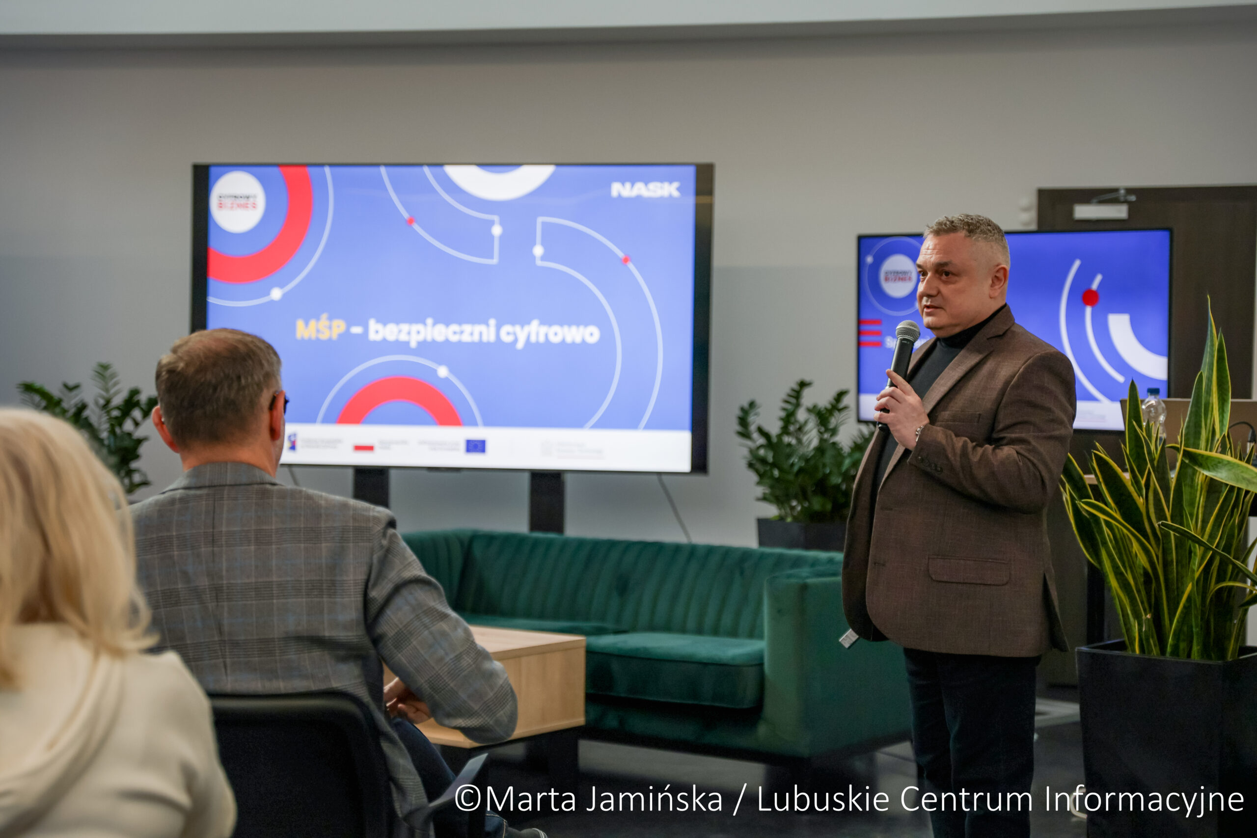 „Nieprzypadkowo szkolenie odbywa się właśnie tutaj, w Lubuskim Centrum Cyfryzacji. Dzisiejsza konferencja ‘Bezpieczny biznes w cyfrowym świecie’ pokazuje, jak ważne jest, by także małe i średnie firmy były świadome zagrożeń. Cyberataki zdarzają się codziennie, a wielu przedsiębiorców nawet nie wie, że padło ich ofiarą. Równie istotne jest bezpieczne wdrażanie cyfrowych rozwiązań, takich jak Krajowy System e-Faktur, który zacznie obowiązywać w przyszłym roku.” - Marcin Gucia, prezes zarządu Lubuskiego Centrum Cyfryzacji: